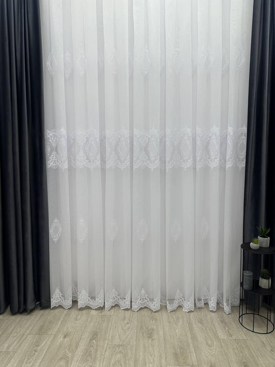 Також ми виконуємо тюль з індивідуальним розміром по вашим замірах будь якої складності - відправляється з мінімальним авансом. (Для прорахунку вартості телефонуйте за вказаним номером на сайті)